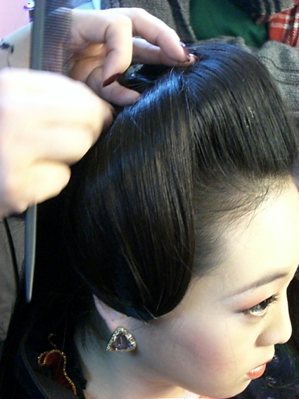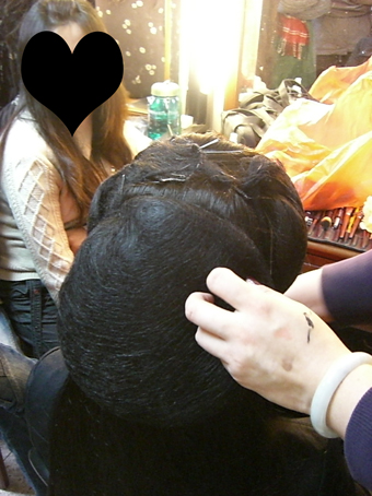 前部分弄好啦 开始弄头发的后半部分了, 是不是已经有几分古代人的味道啦?!