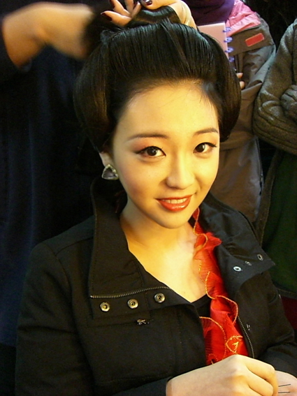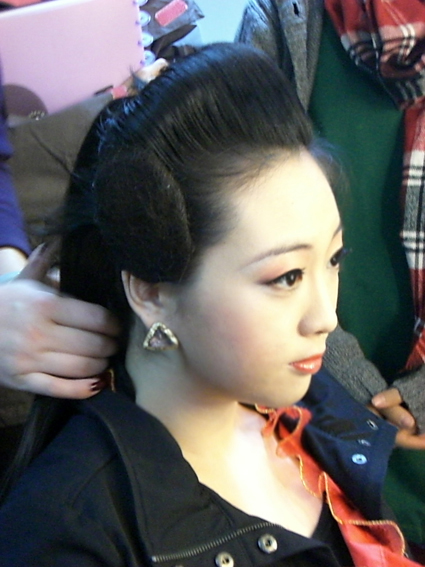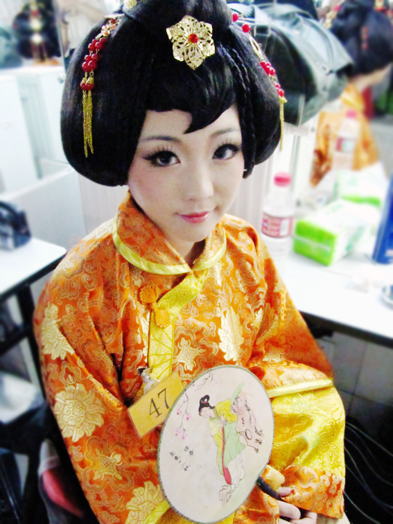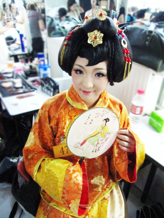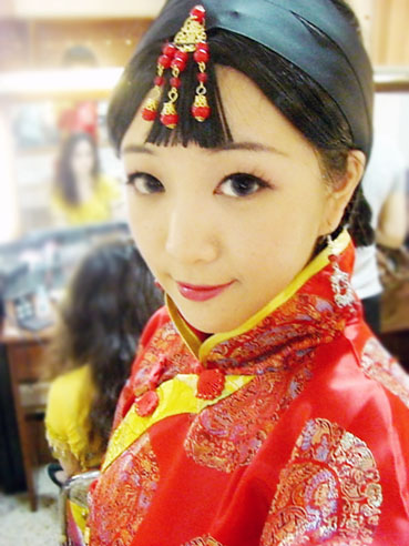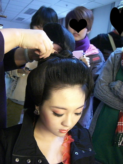 这个 现在已经化好妆啦,除了前面的刘海是自己的头发 剩下的都是假的哦!哈哈