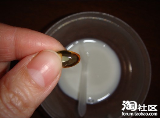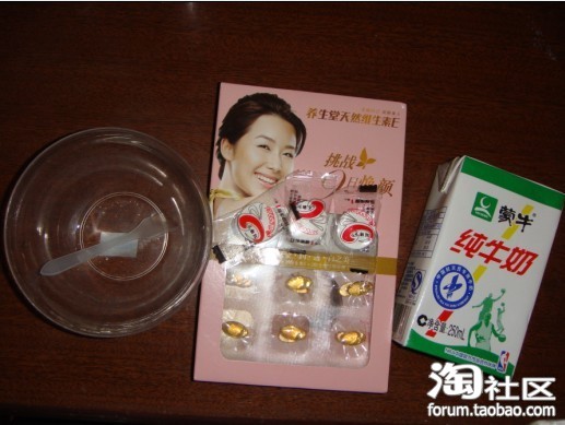 所要的材料,选用了养生堂天然VE加上牛奶。