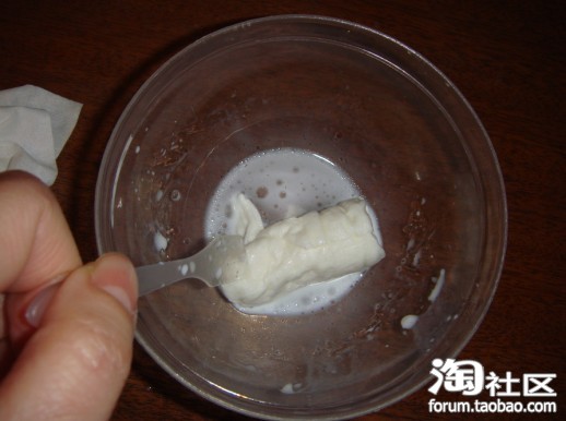 在面膜碗里倒入一点牛奶~