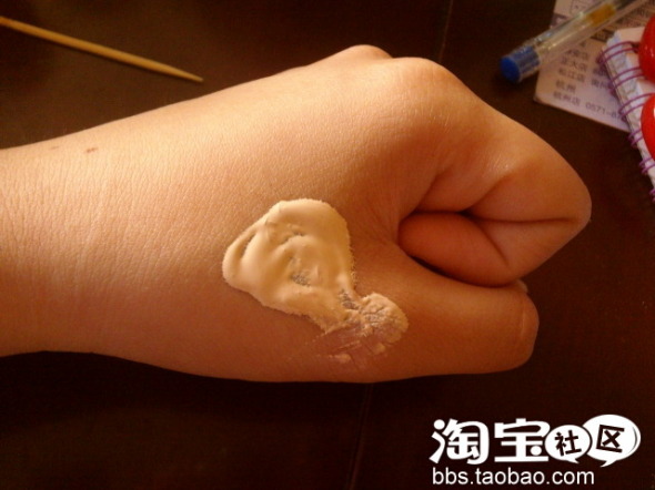2.打好底之后,把多余的粉底亲亲的拍打在嘴巴上,遮盖住嘴巴原有的颜色,因为豆苗比较喜欢日系的妆容没所以遮盖唇色是必不可少的不过事先要把润唇膏涂好哦!让嘴巴先护理下的!避免唇纹太明显!