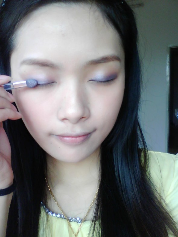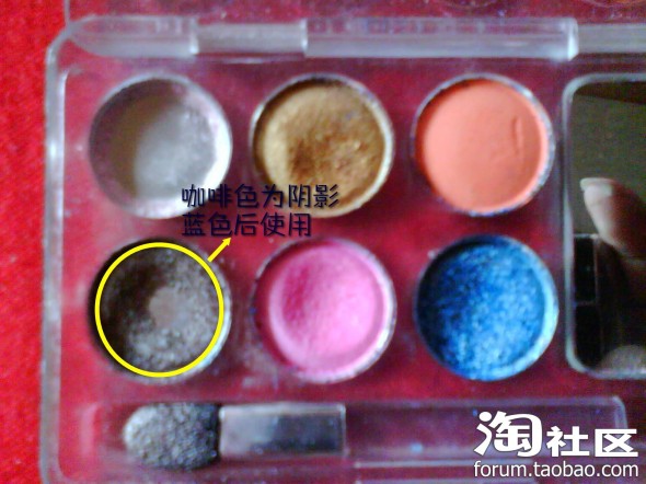 然后选择咖啡色作为阴影,打在整个眼窝处 ,轻轻晕开,使眼睛看起来更大更有神[如下图所示]