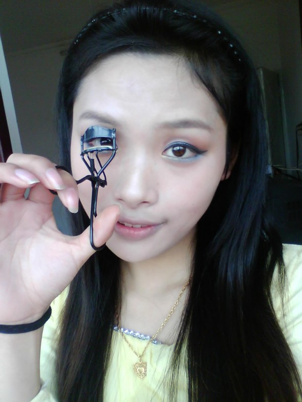 然后用睫毛夹将睫毛从根部开始,轻轻夹翘...