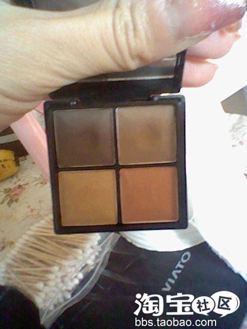 纪家的眉眼两用!上面两个是双色眉粉,下面两个算是眼影了,但颜色有点..不适合小乖,会显得眼睛有点肿肿的!