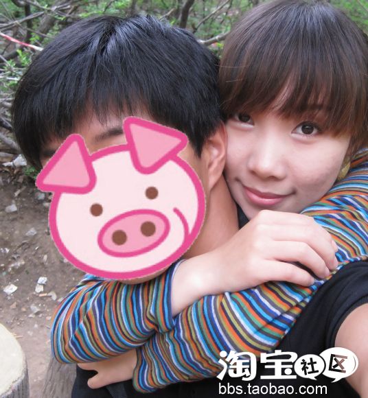 最后上张跟老公的合影。由于他比较闷骚,不敢见人,所以把他的脸猪头掉,哈哈。