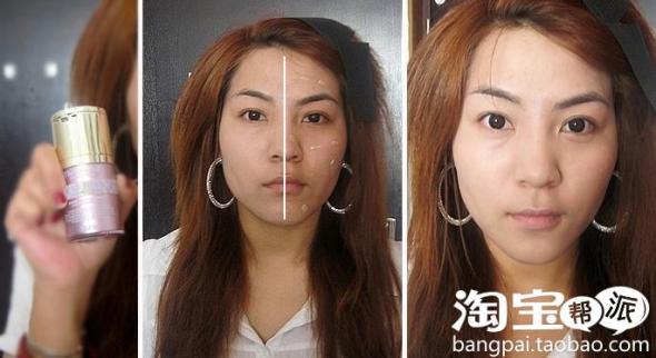 图片中一半是擦了妆前乳的,一半是没擦的,大家可以看到对比,哈哈!