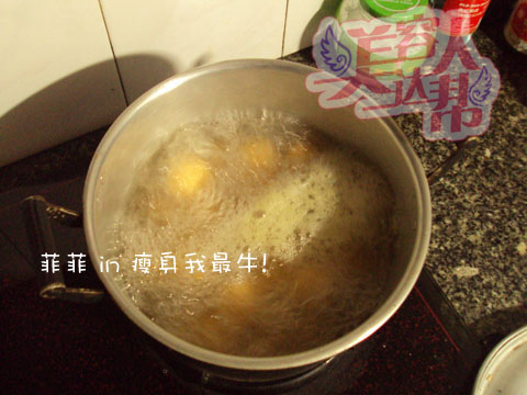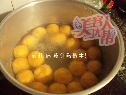 4.放進滾水裡.這個要看你搓的小圓球的大小...