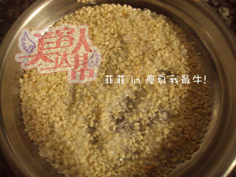 6.准備一碟芝麻.加點點白砂糖...如果怕肥的,就不要加了.(本身番薯也有少許甜味)
