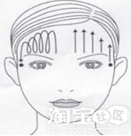 第二步:双手交替从额头中间向左右太阳穴提升重复2次划螺旋同样方向提升重复2次