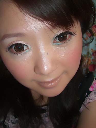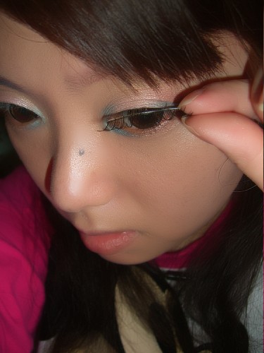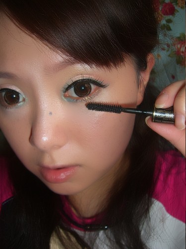 用睫毛膏刷下!使假睫毛和真睫毛粘合!