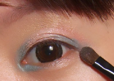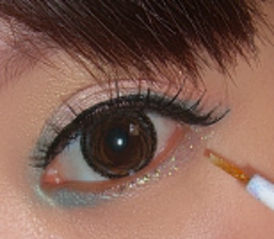 用闪亮眼线液蓝色在下眼部的小三角出 勾画!