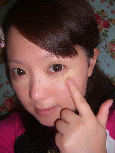 用双头遮瑕膏在眼部的下方做遮瑕。。。。。我的黑眼圈。。。