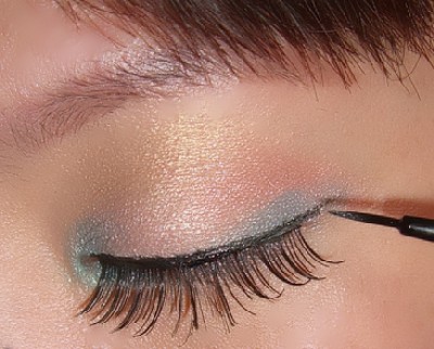 沿着睫毛根画眼线!有很多MM 问眼线液是不是很难画!其实很简单,沿着睫毛根画就OK !比眼线笔画出来漂亮!