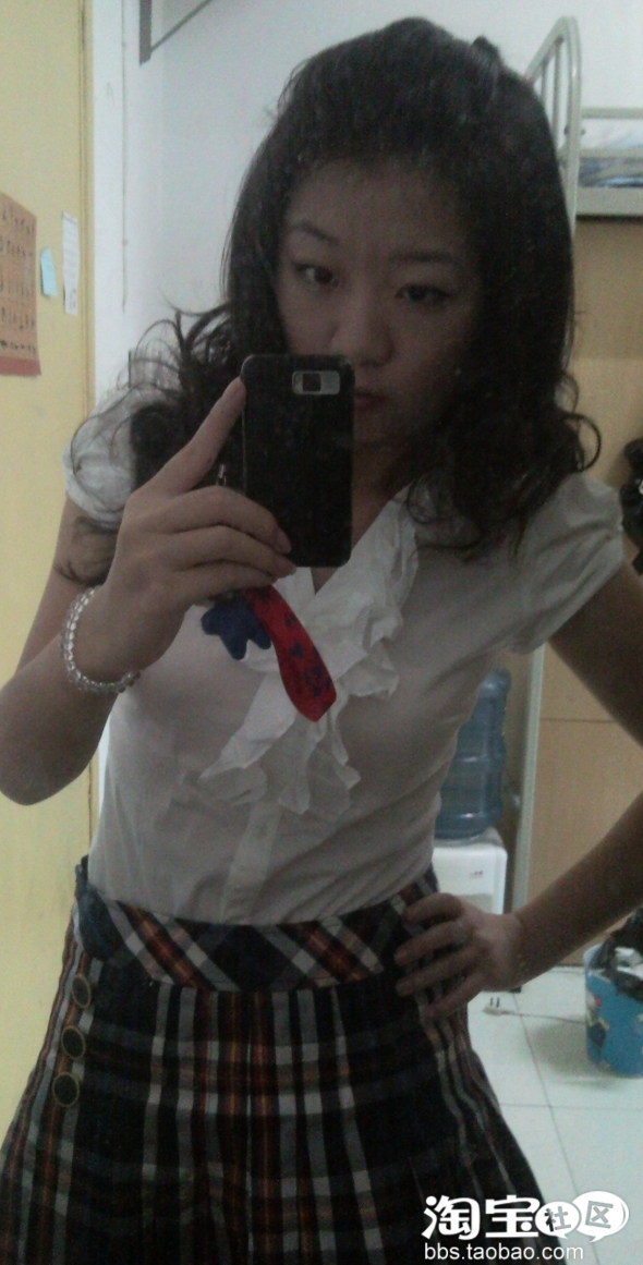 今天穿的挺英伦的。对着镜子来拍一个~~~嘿嘿~~~