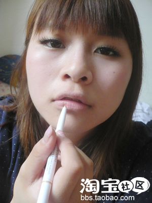 在来有一个重头戏噢,唇部,我先用唇膏打底再用遮瑕笔遮住线条,在用粉色唇膏涂一下,超级韩系的,大爱噢