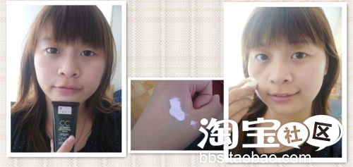 在就呢,就把CC霜涂到脸上,我用的时候在脸上涂得时候都出水珠噢,超级喜欢很滋润噢。