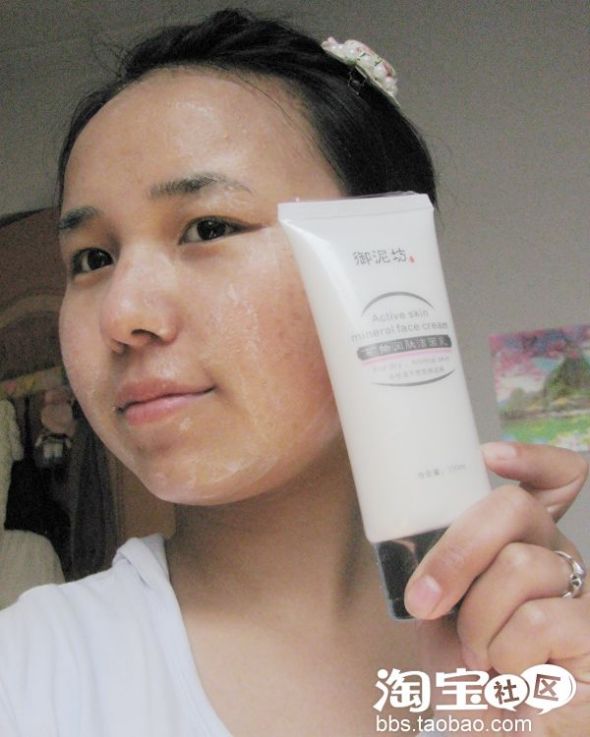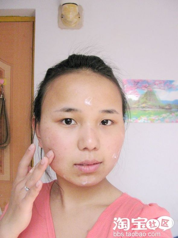 在看看涂抹完营养霜效果如何,这款御泥坊的营养霜很好用的,涂抹上去打圈,超级出水,现在看看是不水汪汪的皮肤呢?