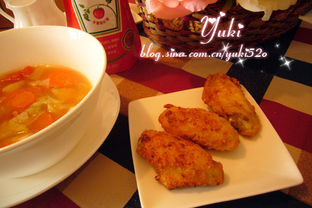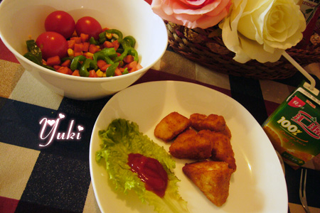 午餐:沙拉 金字塔脆皮鸡块 汇源果汁