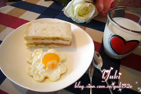 三明治&四叶草煎蛋热牛奶(煎蛋不是很成功的说)