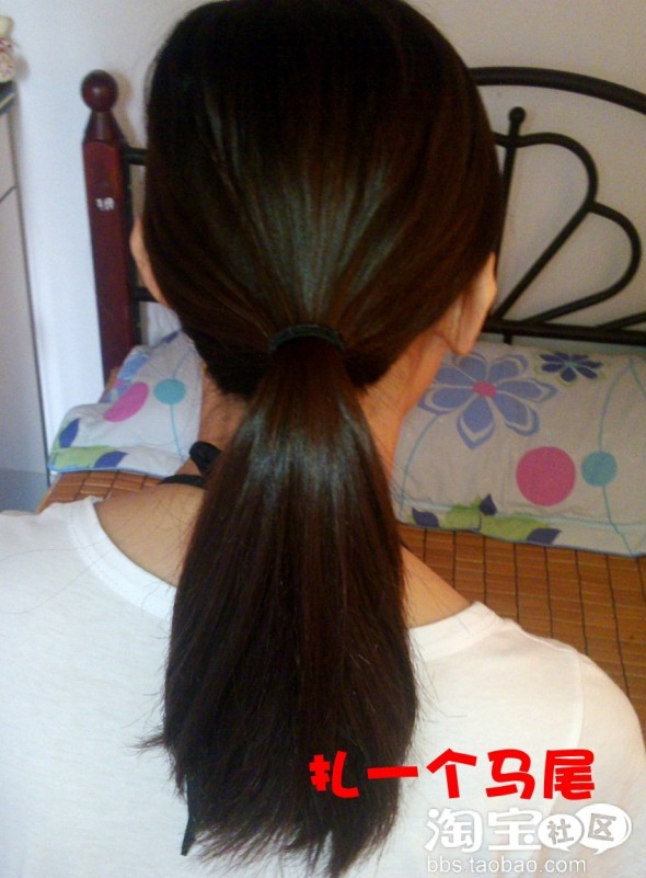 首先 扎一个低马尾(扎偏一点也比较好看)