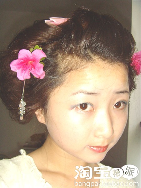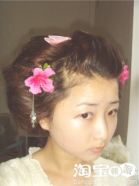是啊 花园里摘得杜鹃花怎么比较像日本艺妓?哇塞,好厉害哟~~比较象东瀛那边的发型啊。明治时期吧