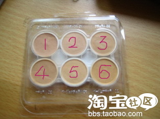6色粉饼,深浅不同的6种颜色,不但可以很好的定妆、遮瑕,还能起到阴影的效果,经过多次实践不会刺激痘痘堵塞毛孔,看来还是实践出真知啊~~~因为痘痘和痘印、很眼圈都是比肤色深很多的,只用1种色号的粉饼,效果不好,所以蓉蓉用了6个颜色(如果没有这么多,2-3个色号也可以,就是正常,浅一色号和深一色号的3款粉饼)
