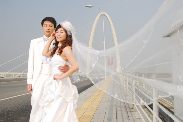 虽然拍照时是10月份,天气已经有些凉了。也许是我们的幸福太阳公公也特别照顾我们,拍外景那天天气特好,特别暖和,老公的眼睛被阳光照的都眯起来啦,嘻嘻