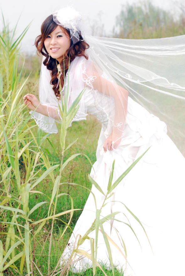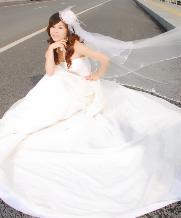 特别喜欢外景的这套白纱,太喜欢啦,臭美几张自己的单张照,呵呵