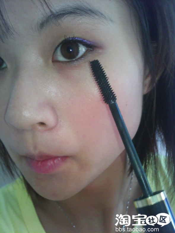 先刷一层上睫毛,刷下睫毛可以画Z字型 也可以像我这样竖着刷 一根根刷。