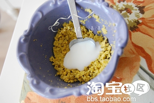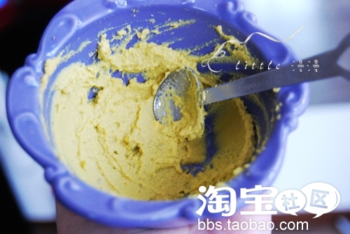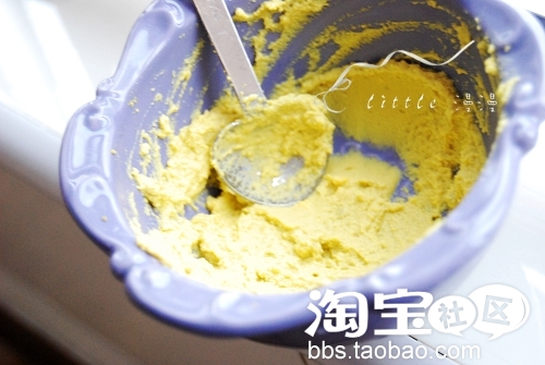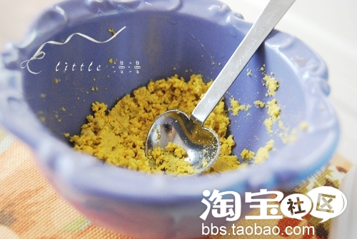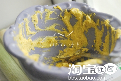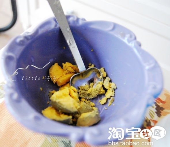 然后我们要把蛋黄捣得碎碎碎碎碎的,非常碎的哦!