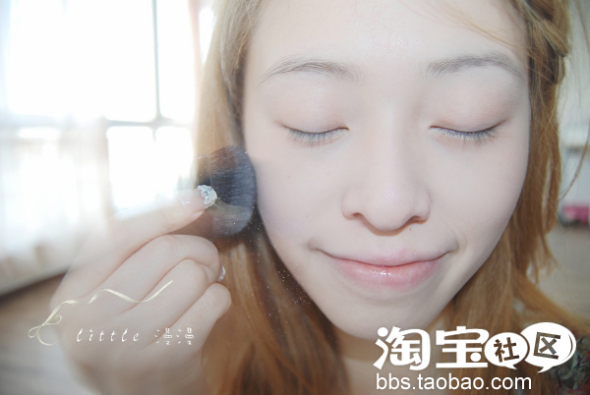 用大粉扑用轻柔的按压方法去推匀粉底,不要擦来擦去,很伤皮肤