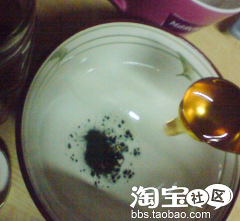 首先放入螺旋藻粉粉~然后加入婴儿油