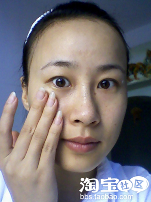 保湿后,猪猪用梦妆精华素涂在脸两边,用金银杏的眼霜抗皱款,呵呵呵