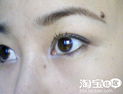 还用银色的眼影描了描眼角,提提色咯~~~~用蒙芭拉眉粉沿着眉峰轻轻画,