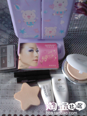 上面的是猪猪的家当了,先用了妆前乳提色,再用BB霜白白,和我一样用指腹推推喔