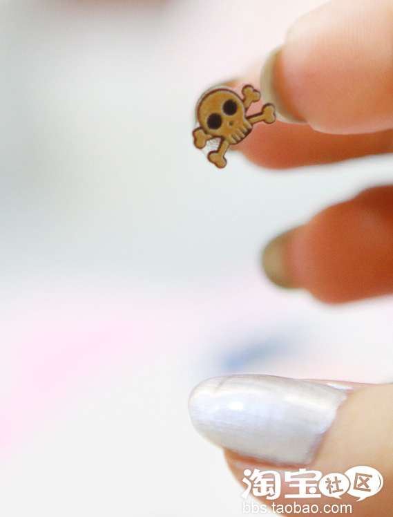 等待干后 将骷髅贴片准备贴上罗