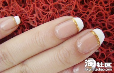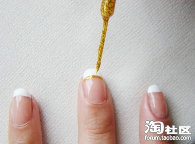 所有白边都化完了,喜欢简单的JM到这步就可以停止了,再刷道亮油就行了,喜欢有点点缀的可以再分界线上贴一排镶钻费时间就是,我直接用拉线笔勾线了,O(∩_∩)O~