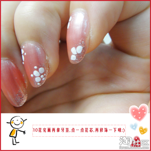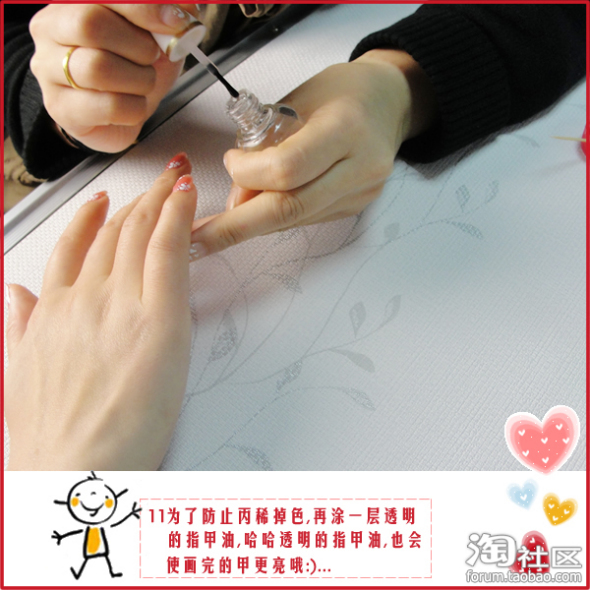 第四步:等画好的花花干透后涂上透明的指甲油~~~