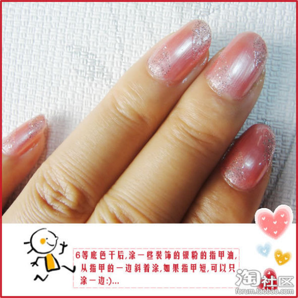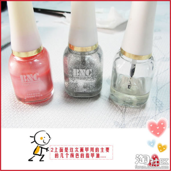 (2)步骤中用到的指甲油(肉粉色、闪银色、透明色):