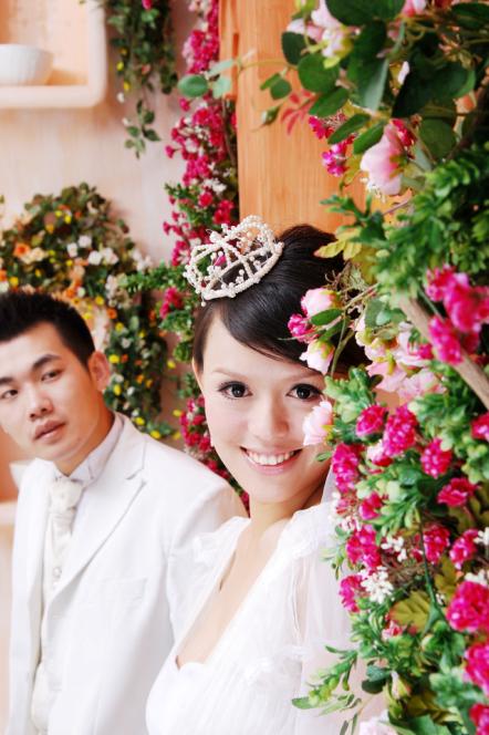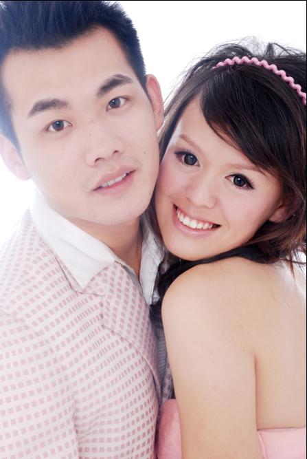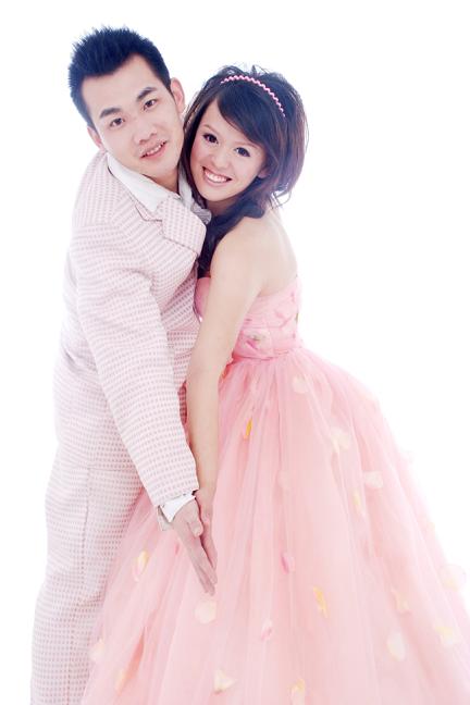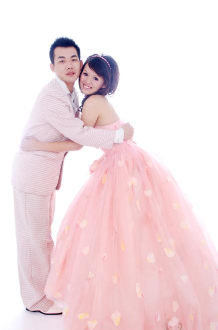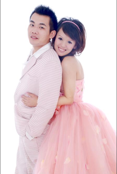 这套是比较可爱的一组造型,是老公笑的还算自然的一组,呵呵,粉粉的,老公说,终于可以露正面了