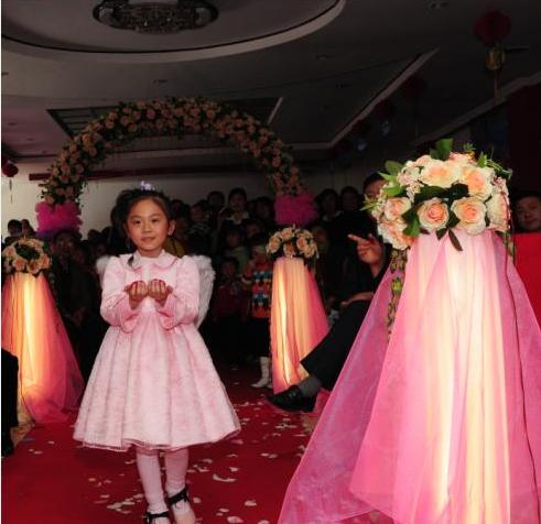 然后是交换戒指,谢谢我们的小天使哦, 小天使捧着戒指上台