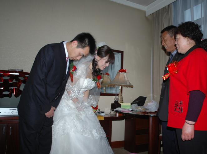 我和老公是异地恋,所以结婚那天我只能住宾馆,从宾馆接的我,老公家是山东的 ,和我们那边的风俗很不一样,结婚真的好累,礼节特别多,但好幸福哦