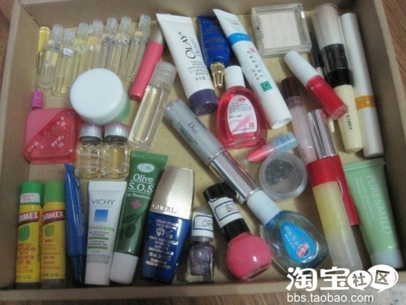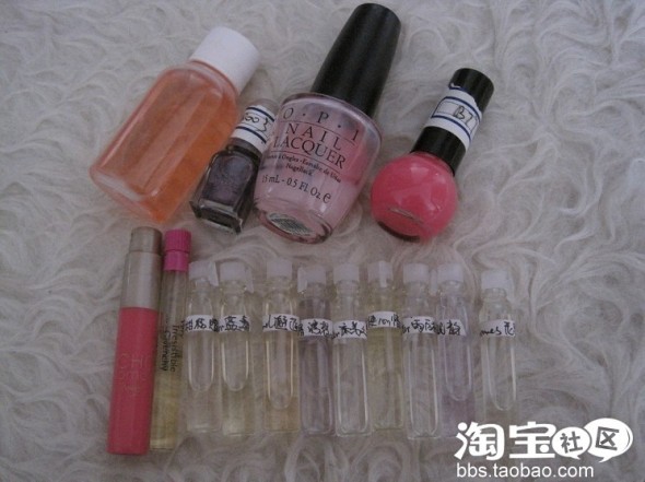 香水:大学时喜欢回声。。。后来腻了。。。。我个人对香味非常敏感,还有花粉症。。。。吃花粉都过敏呕吐。所以现在都没找到喜欢的香水。去丝芙兰没试几种就麻痹了已经。。。。拿回来的试香条又容易混乱。。。。这堆试管是网购的。选了好几种想要试试,结果没有一个自己喜欢的。现在发现刚出的粉色的邂逅不错。。