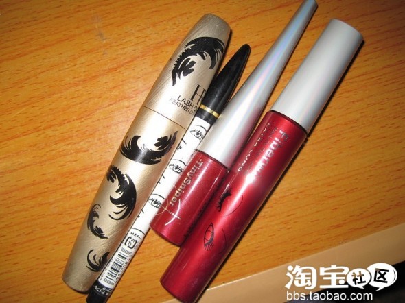 bb家眼线膏2个:黑和咖啡。买的套装,因为送一个刷子。蛮好用的~一点也不晕。我画眼线之前都会先在手上画一道调厚度,手上的印子洗很多遍手(我有强迫症,一天要洗无数遍手,而且必须要用香皂,重点洗手指,线画在手背)都不掉。就是不知道什么时候能用完。