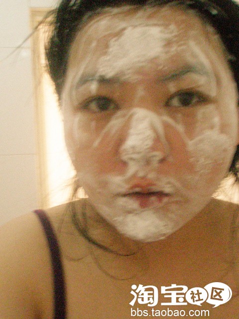 所以我每次都是先按摩一下 然后再把珍珠粉直接扑在脸上 然后再按摩一会洗掉