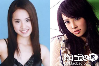 妆容点评: 左边照片里的赵薇脸型简直是一个圆角的正方形,油光满面,真的有点土里土气。但你看右边的照片里脸型变尖了,轮廓分明,青春时尚。所以,要脸变瘦,一定要去除油光,只在凸起的部位打上高光就好了,其次眼妆仍然是重点哦,发型也一定要轻盈飘逸才能衬托瘦脸 型。