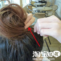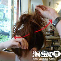 2.一手抓住固定发旋的发束,另一手当梳子,把下半部的头发分撮往上抓。