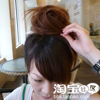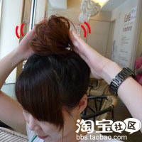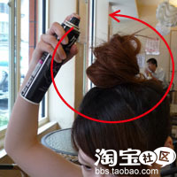 12.用强力定型效果的定型喷雾,绕著丸子头周围喷一圈。