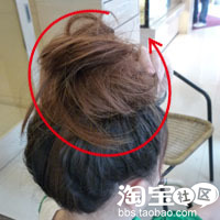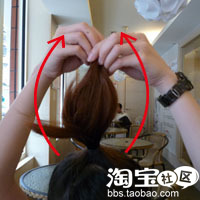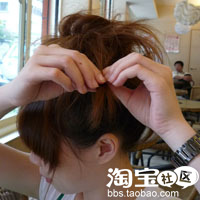 2010年最潮丸子头的扎法图解 1.用手当梳子,先抓出耳上的头发,固定在头顶的发旋区。