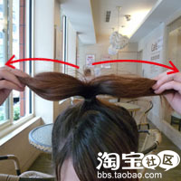 4.抓起整撮发束,两手分别把发束抓成左右两撮,往左右两边撕开。